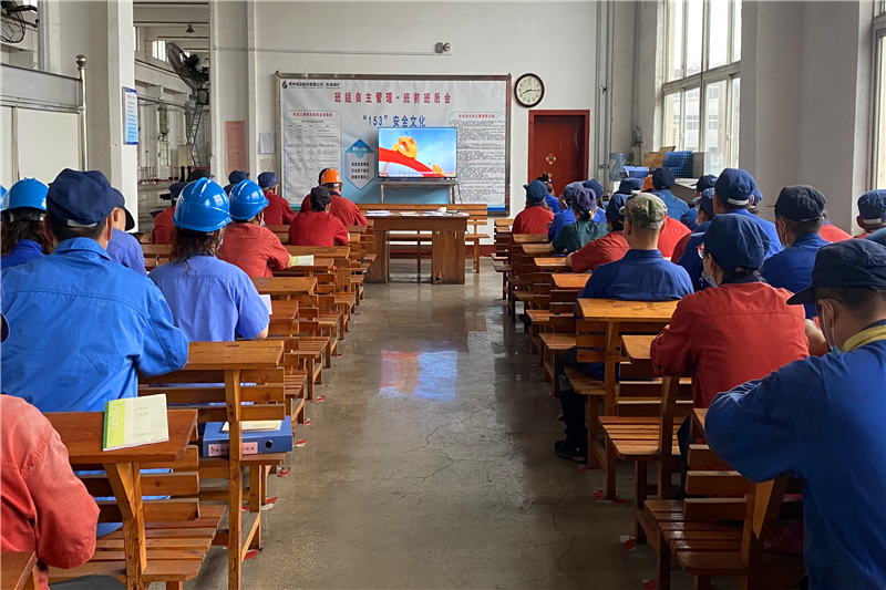 在生产服务中心会议室内,系列主题宣讲第二讲《永葆初心 勇担使命——开展“四史”宣传教育》视频正循环播放中,吸引着路过的职工,驻足听上几分钟。不光中心会议室,车间的电视上也会在职工集中休息的时间循环播放。